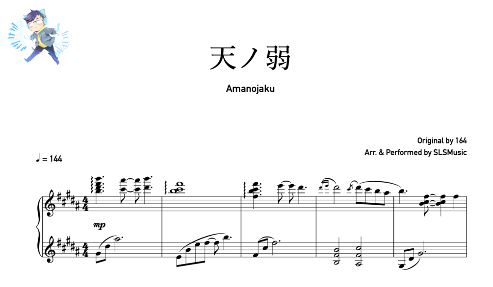GUMI / 天ノ弱 Amanojaku - 164$3+$3+https://schema.org/InStockusdSLSMusicPiano Solo of " 天ノ弱 Amanojaku" performed by SLS.Get Sheet Music (.pdf) by entering USD $3 or more to support SLSMusic. Includes an Mp3 file for listening.輸入 3塊美金(USD)、或以上 的價格來支持SLSMusic並獲得樂譜檔案(.pdf) 此選項附贈 Mp3 音檔供試聽。Original Video: Name a fair price:$I want this!